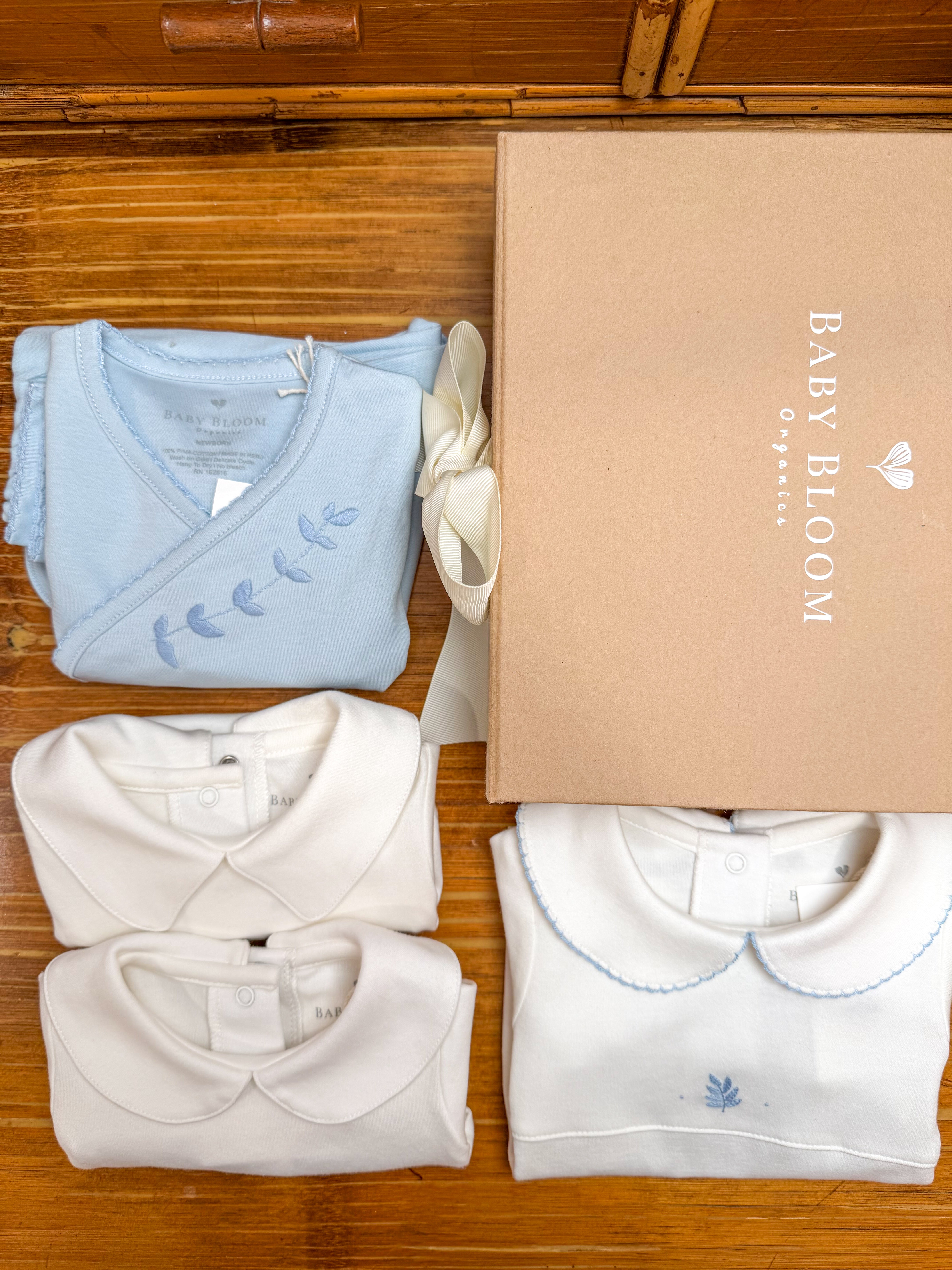 This Oliva Blue gift set offers elegance, comfort, and heirloom-quality details families will treasure.